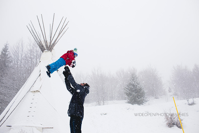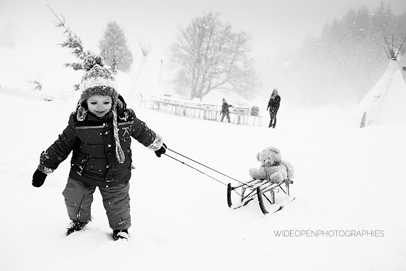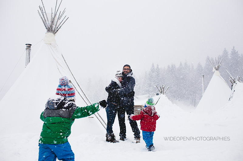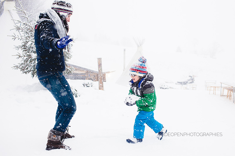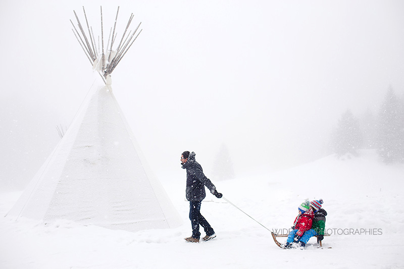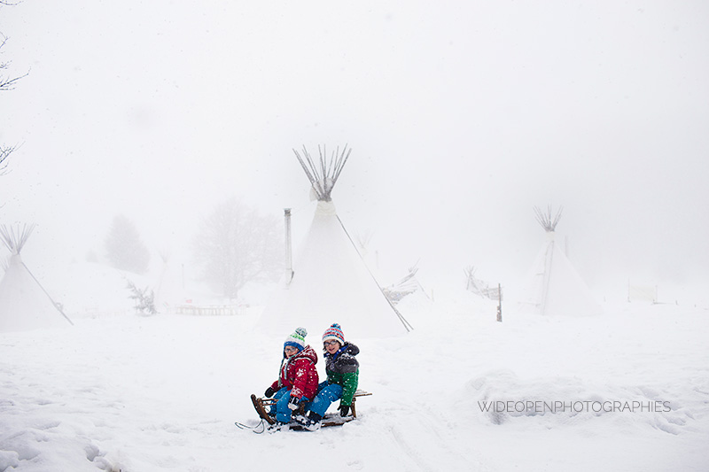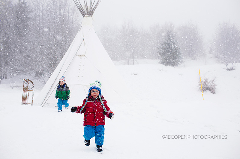 On a couru, on a fait une bataille de boules de neige, on a même réussi à faire un bonhomme de neige. Notre chocolat chaud à l’abri dans un tipi était bien mérité 😉