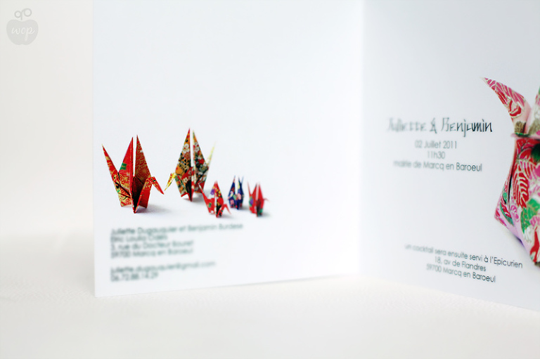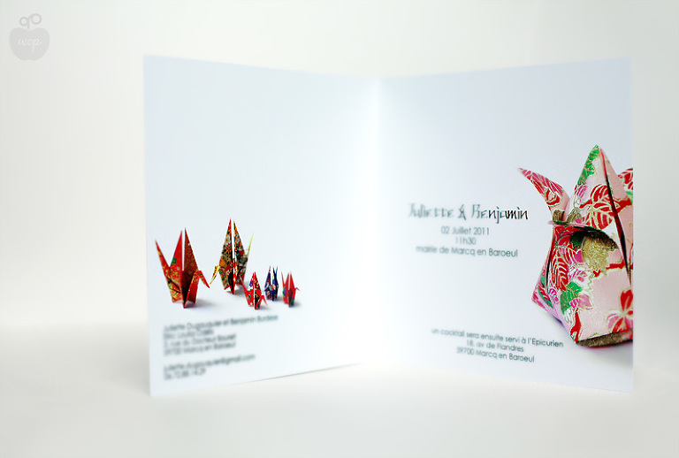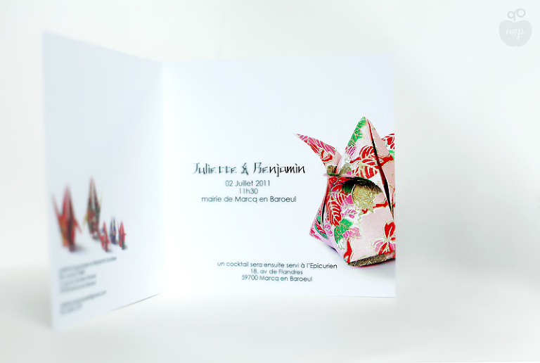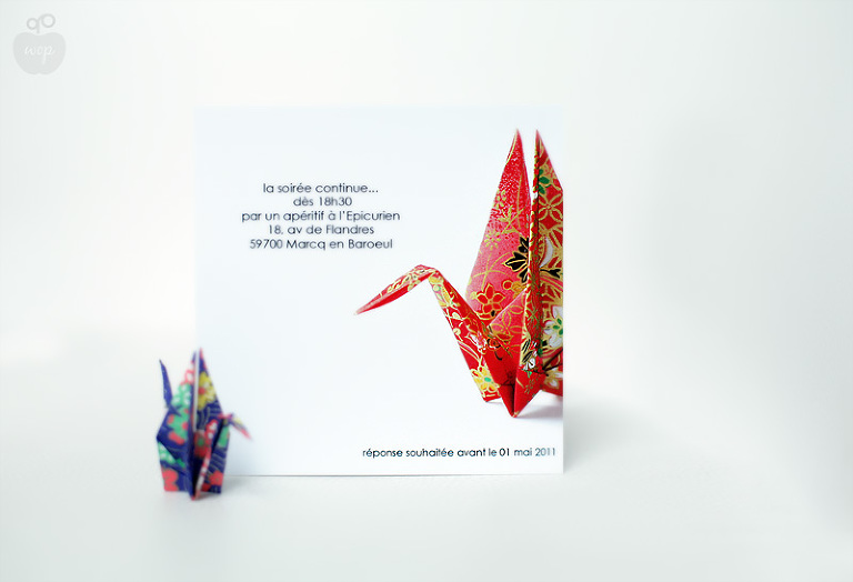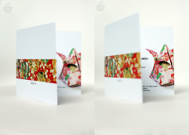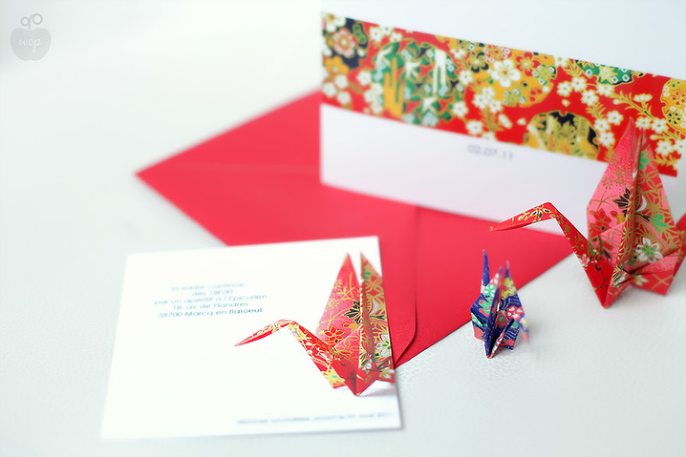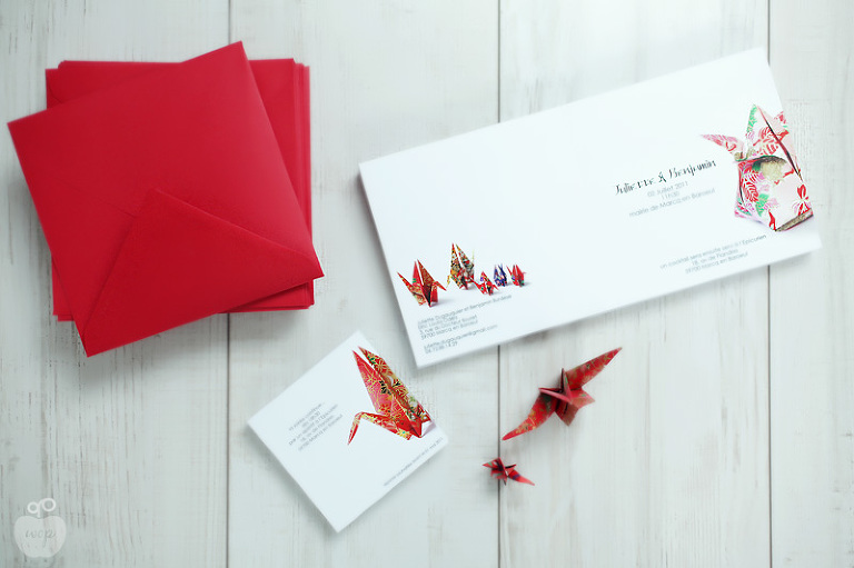 Quand ma belle-soeur m’a demandé de réaliser le faire-part de leur mariage, je me suis dit « waouuuu » pour la confiance qu’elle m’accordait puis « gloups »! Le thème était donné : le Japon. Pays qu’ils aiment par dessus tout, et veulent revoir encore et encore.