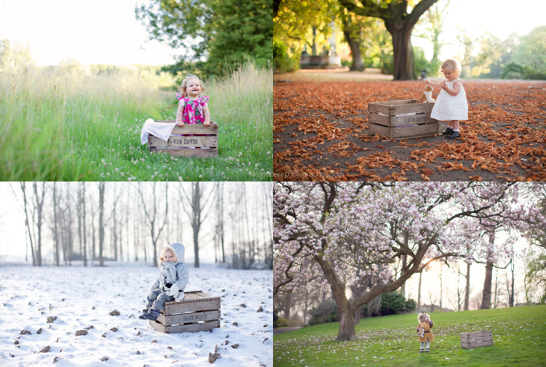4 photos – 4 saisons – 1 caisse – 1 mini loup (fidèle compagnon) – 1 petite fille.