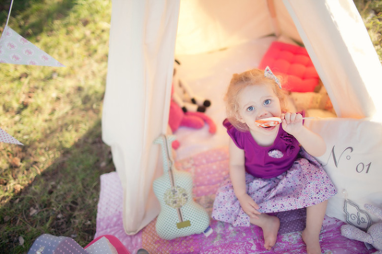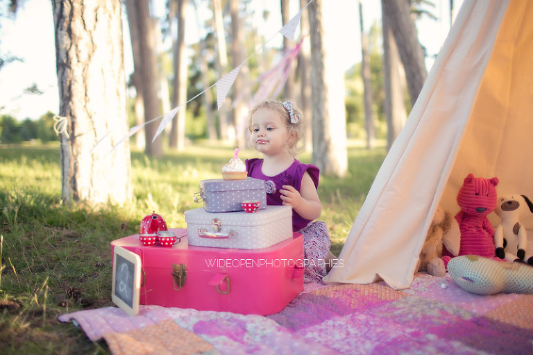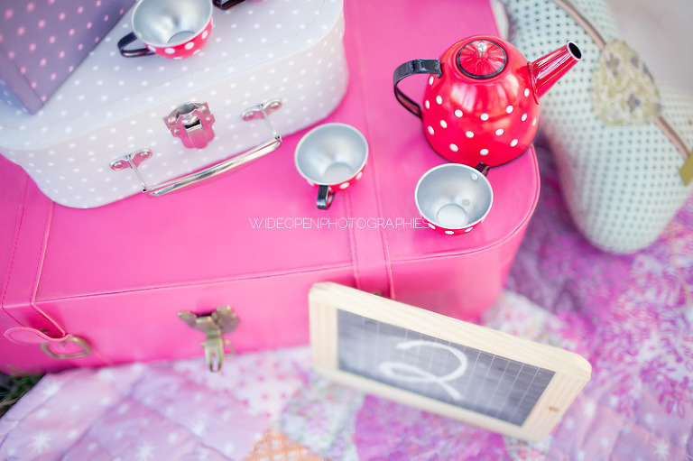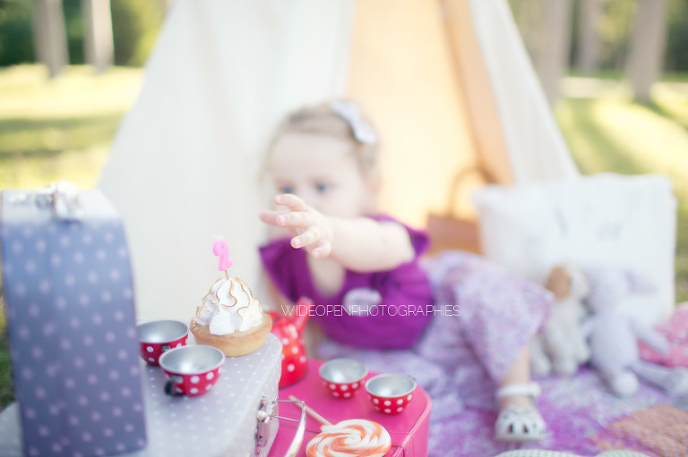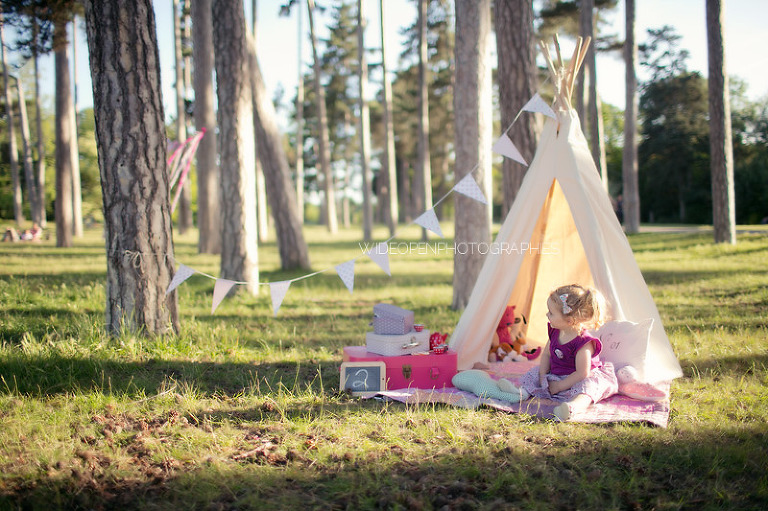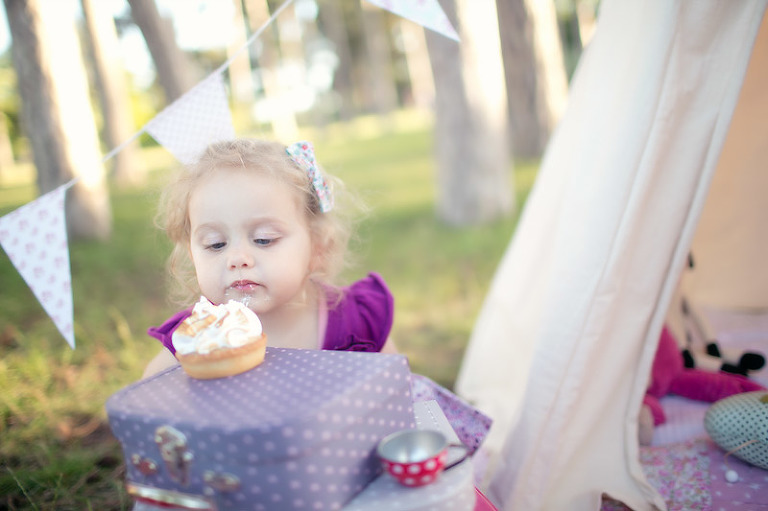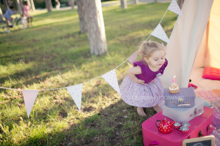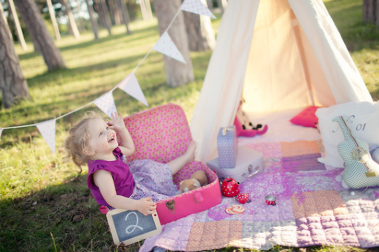 Un gouter en pleine nature pour lequel j’avais déménagé une bonne partie de la chambre d’anna afin de lui recréer son univers pour ce beau gouter d’anniversaire à l’aube de ses 2 ans. Tout en rose et blanc, à l’image de ma loupette « so girly ».