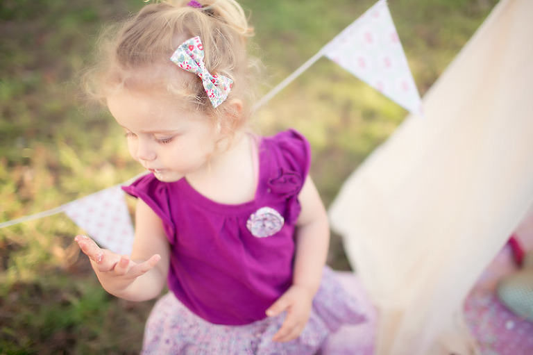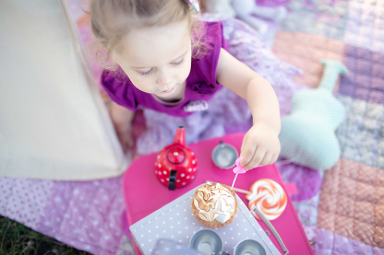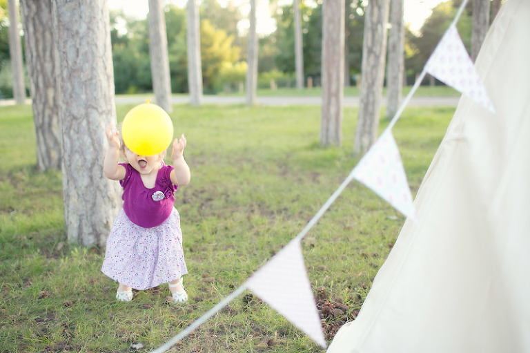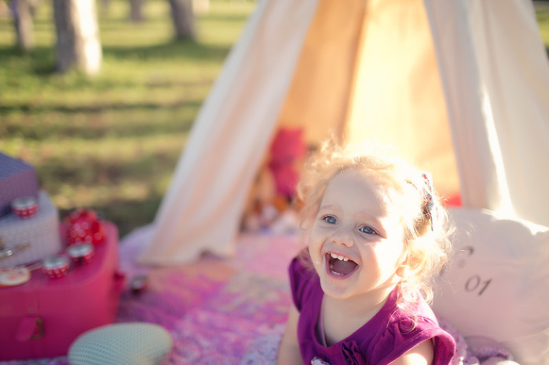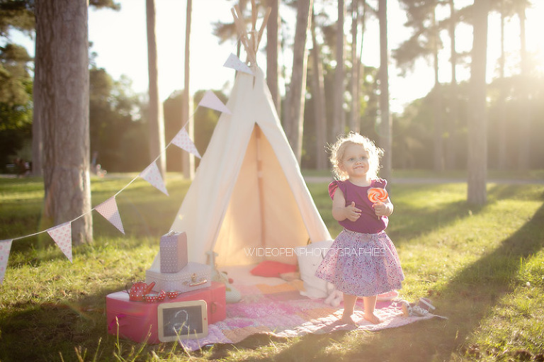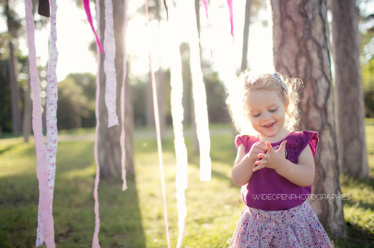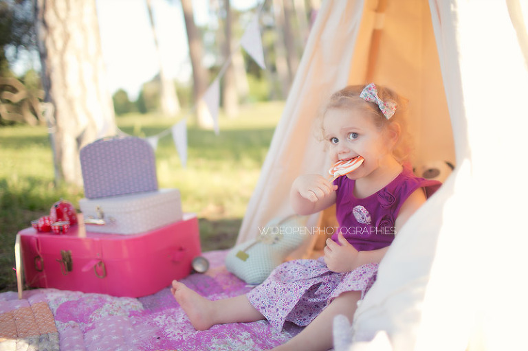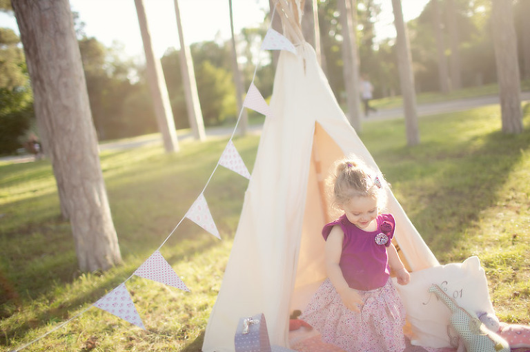 Un gouter en pleine nature pour lequel j’avais déménagé une bonne partie de la chambre d’anna afin de lui recréer son univers pour ce beau gouter d’anniversaire à l’aube de ses 2 ans. Tout en rose et blanc, à l’image de ma loupette « so girly ».