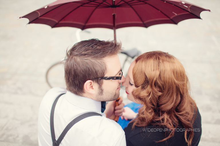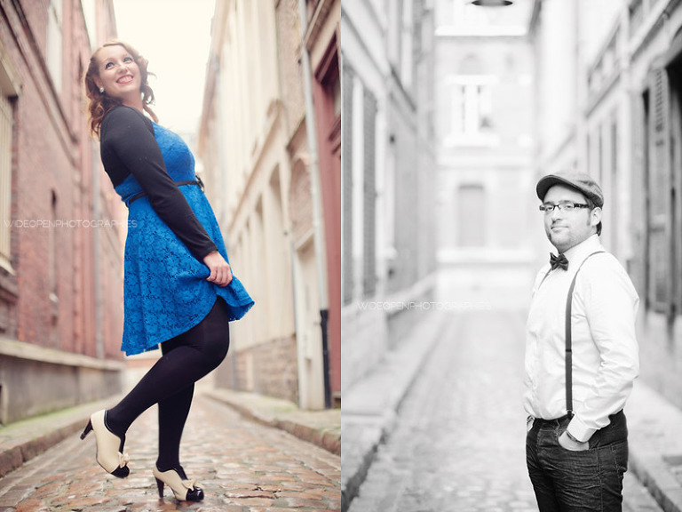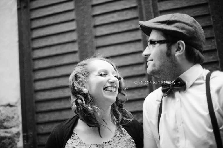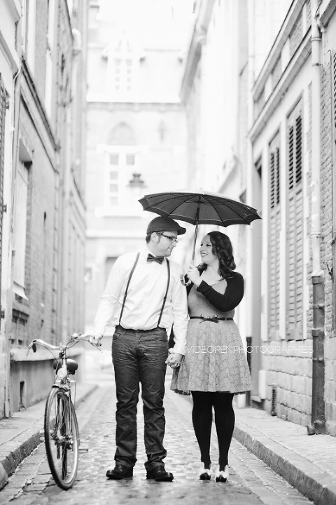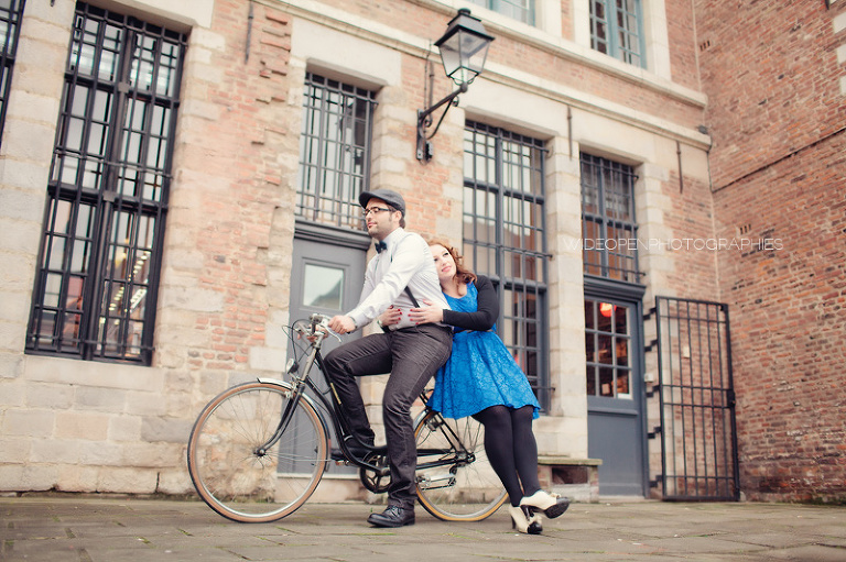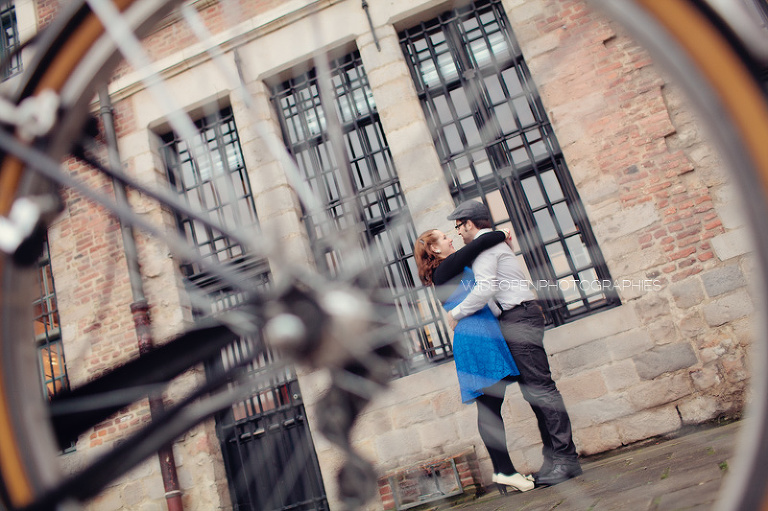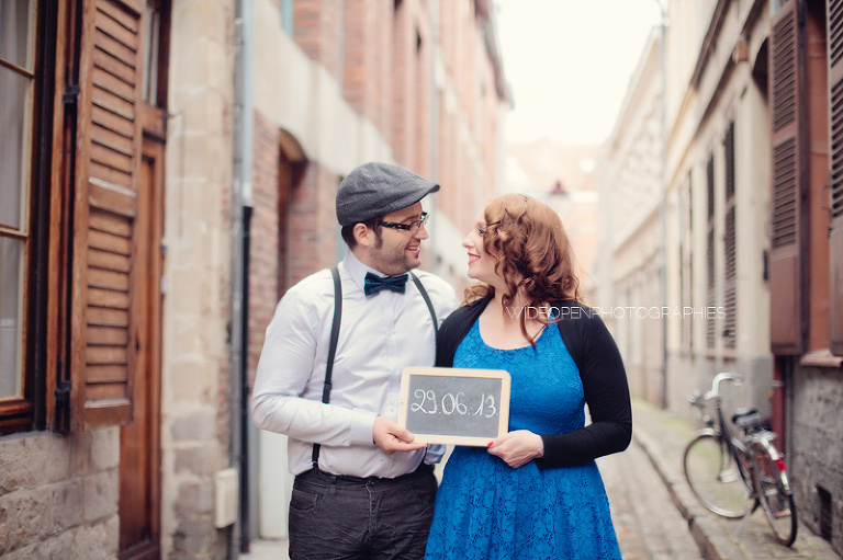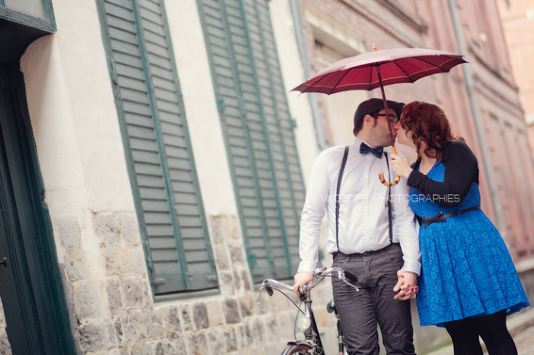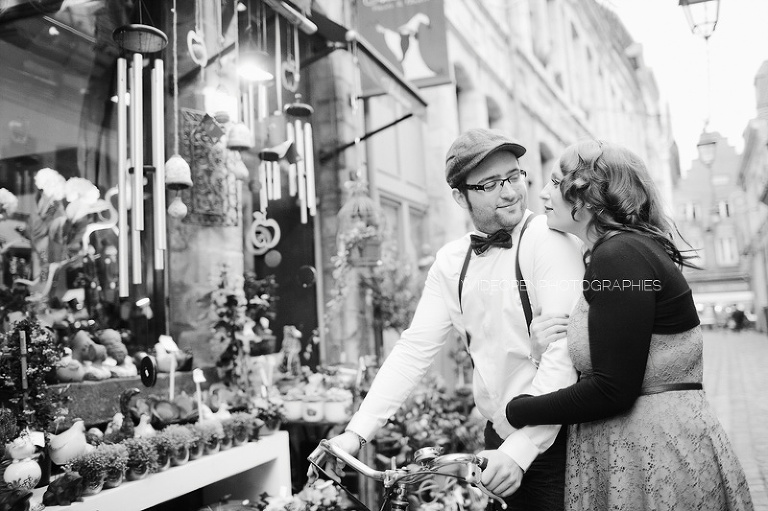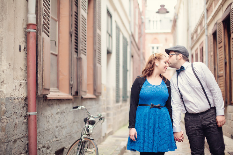 Adeline et Cédric étaient venus tout droit d’Alsace accompagnés d’un…… vélo! Autant voyager léger, c’est sur. Avec un petit côté rétro années 50, un style bien assorti, voilà une séance juste géniale 🙂
