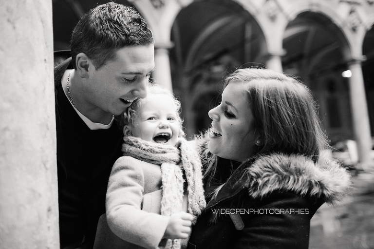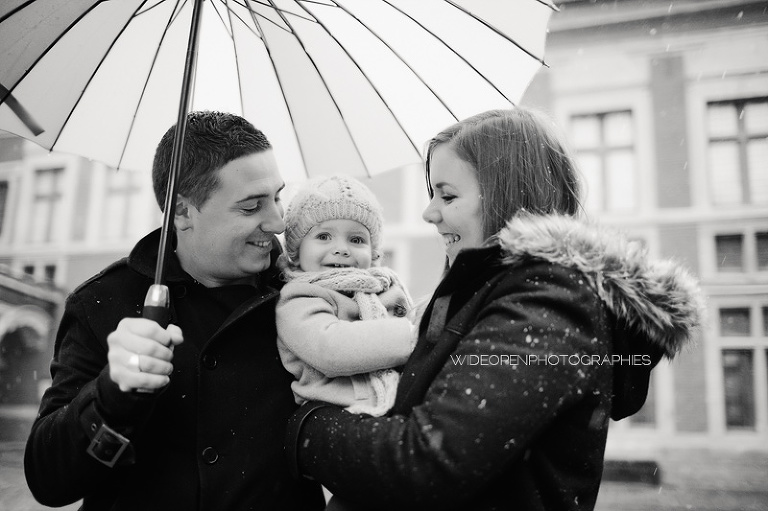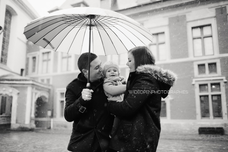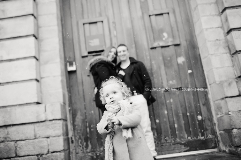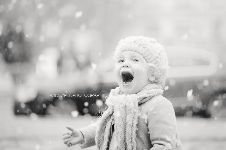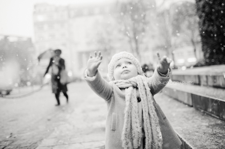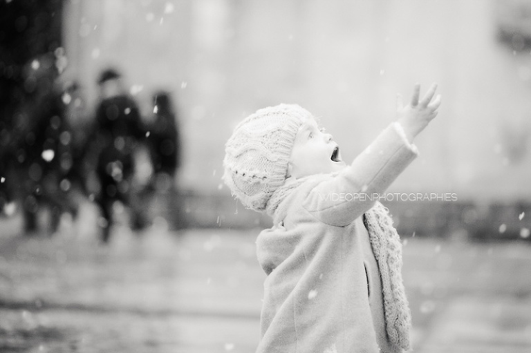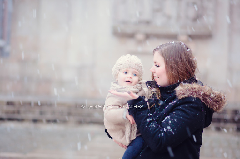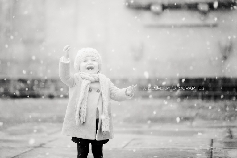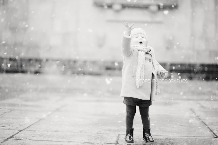 Quoi de plus génial pour une séance famille avec une petite fille de 18 mois que les tous premiers flocons de neige?!