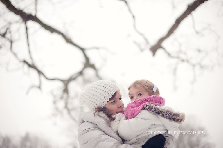 J’ai retrouvé une petite fille que je connais bien maintenant : Capucine. Nous avions un endroit pour nous tout seuls, de grandes étendues blanches. Sauf que la neige parfois c’est un peu trop froid… et ça donne juste envie de se blottir au chaud contre maman 🙂