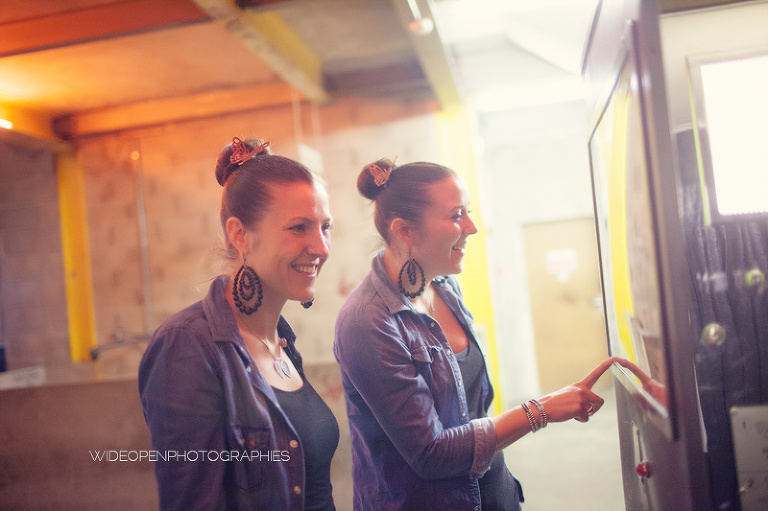Elles nous avaient donné rendez vous dans un endroit au style industriel, comme il commence à en avoir partout en France. Le Lieu unique à Nantes. Un vrai terrain de jeu avec des espaces assez bruts, et ce vieux photomaton foto automat qui a beaucoup fait rire les jumelles.