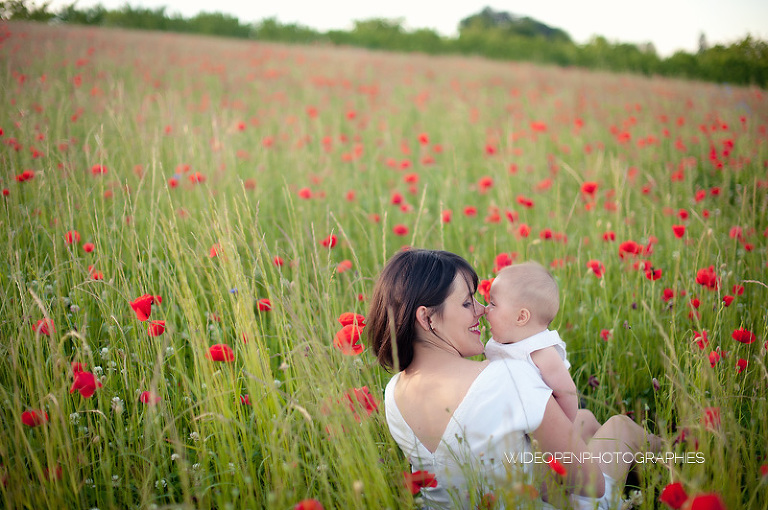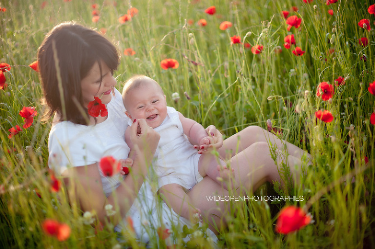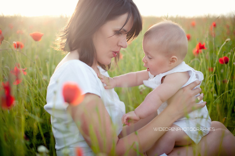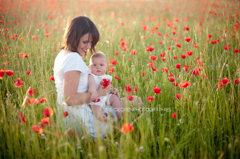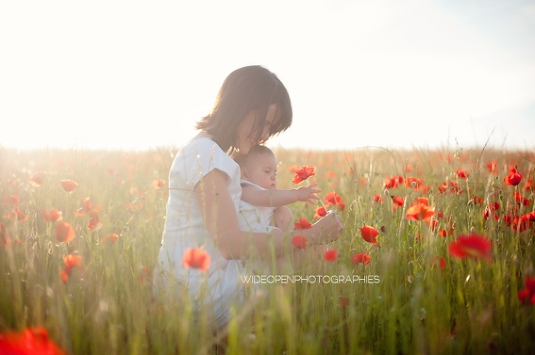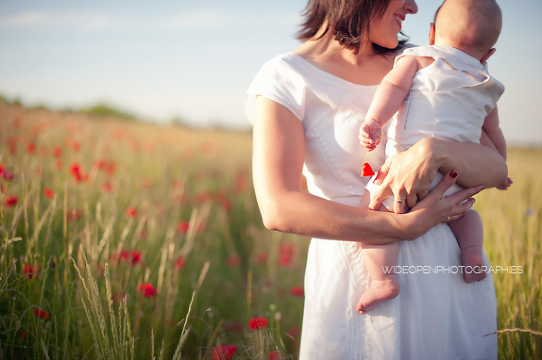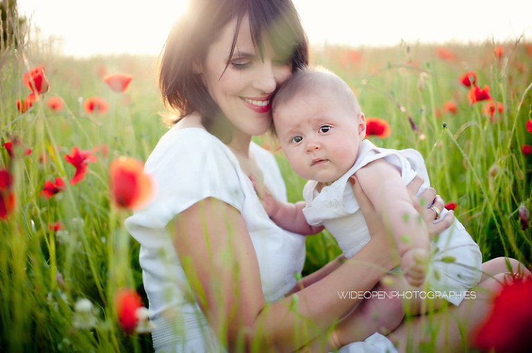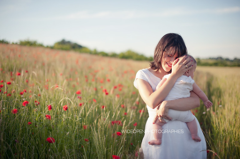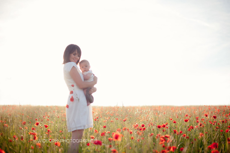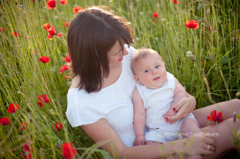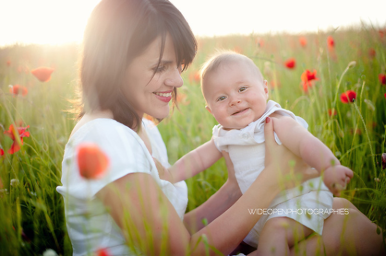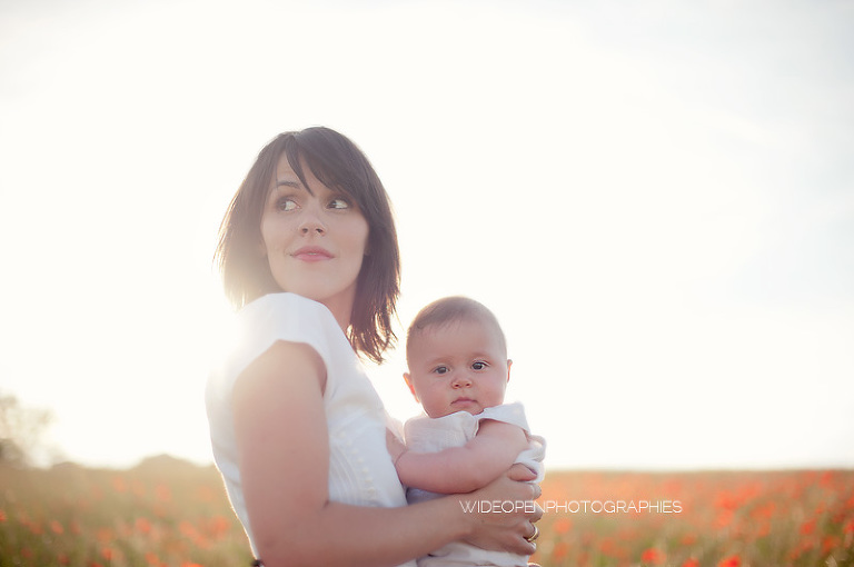 Un grand dépaysement pour moi de se retrouver là, au milieu de la campagne lyonnaise et des coquelicots, profitant d’une lumière divine pour une séance mère-enfant, l’une de mes préférées vraiment.