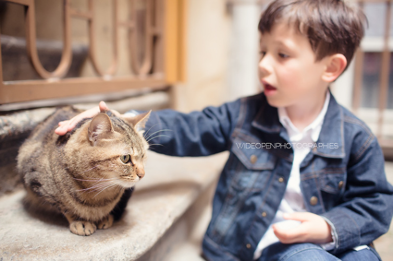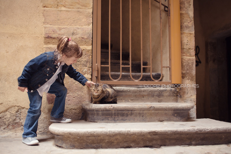 Faire du lèche vitrine, sauter, crier de joie quand le funiculaire passe; et parfois une pause d’une rencontre inattendue, un petit chat qui du coup a récolté plein de caresses.