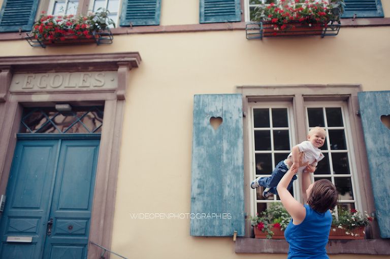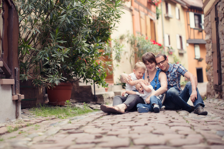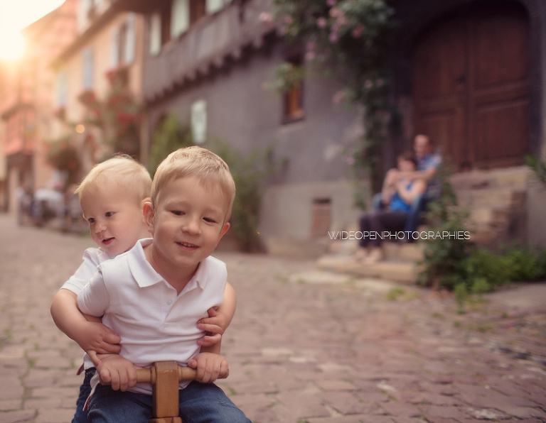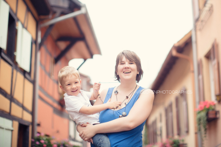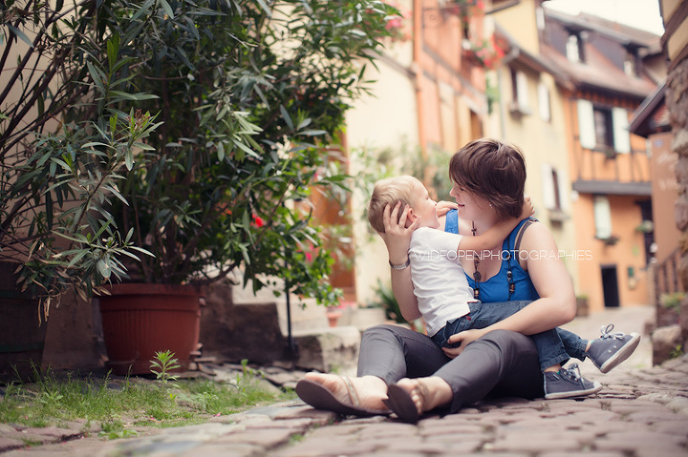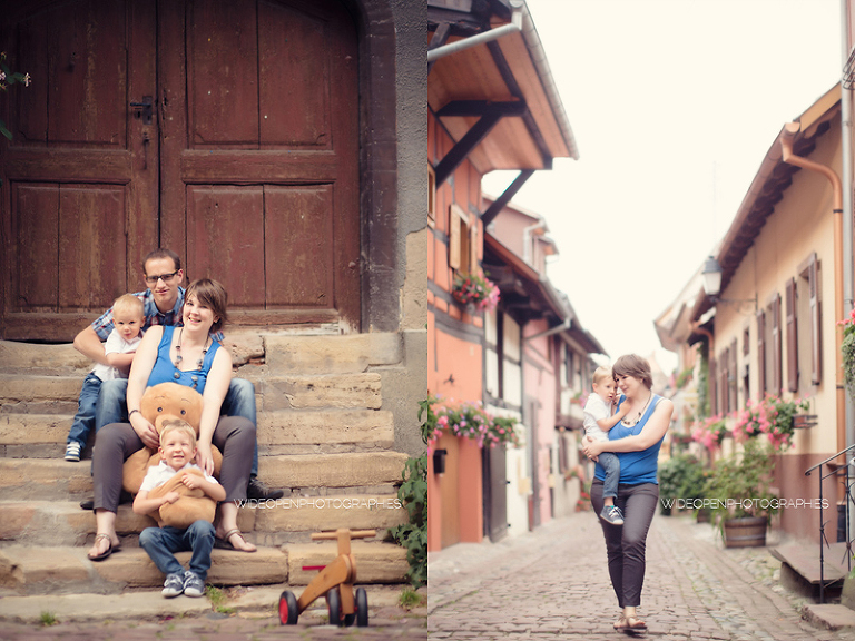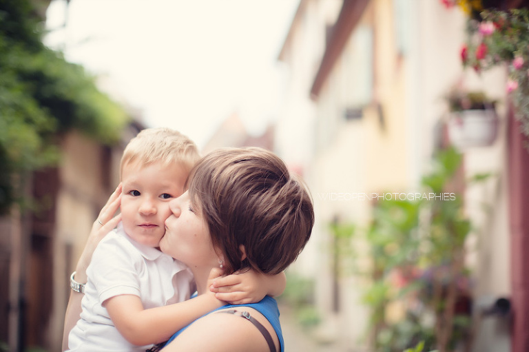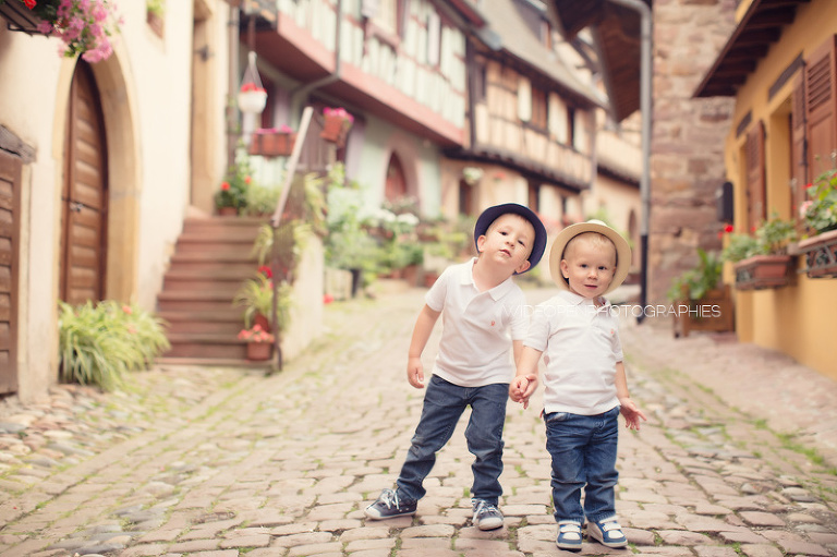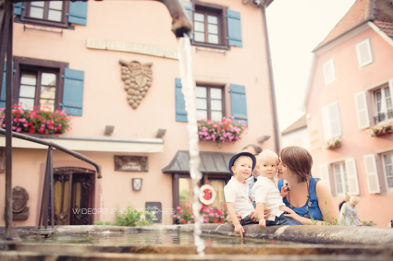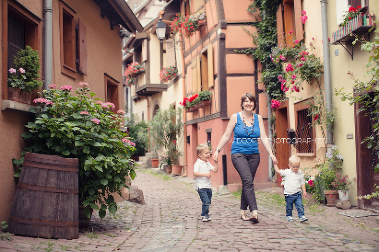 Elle nous avait donné rendez vous dans la très belle ville d’Eguisheim, en compagnie de ses 3 hommes. Une famille ultra caline, bien animée par ses 2 petits blonds qui se ressemblent tellement, sans être jumeaux.