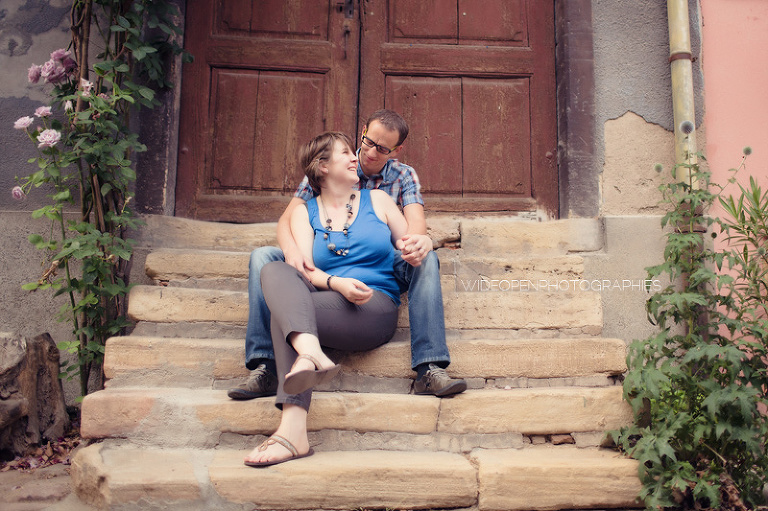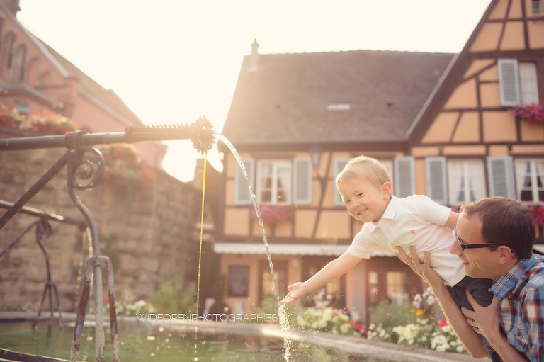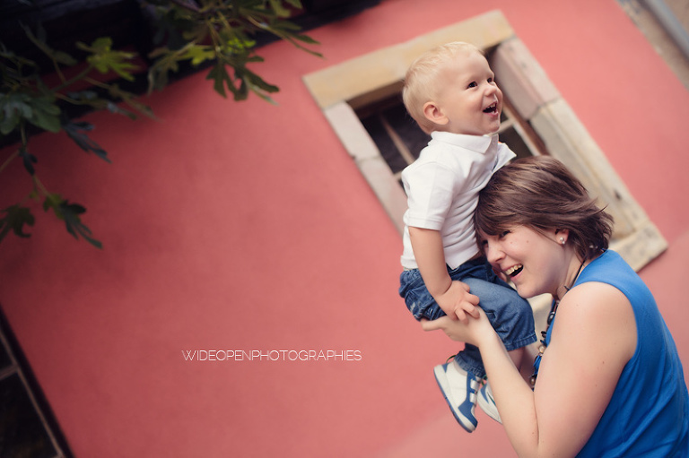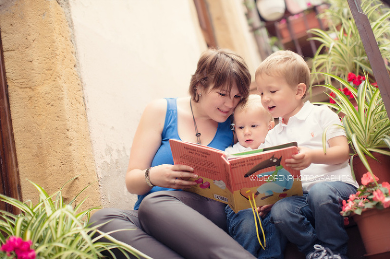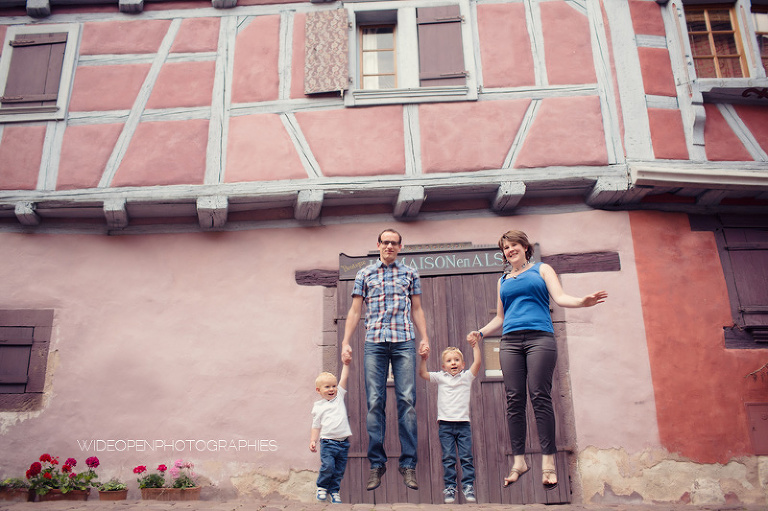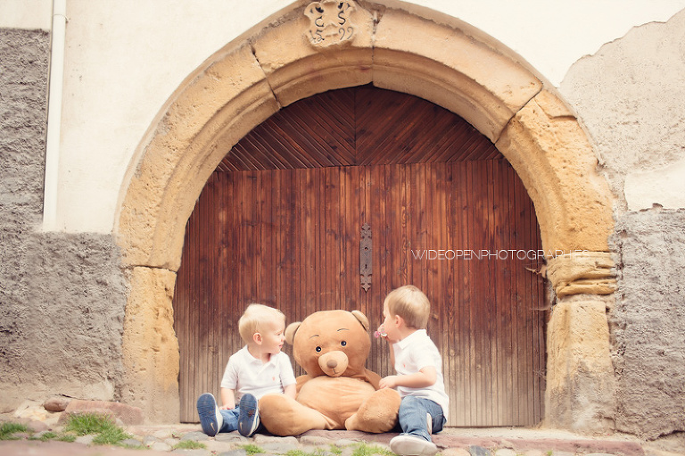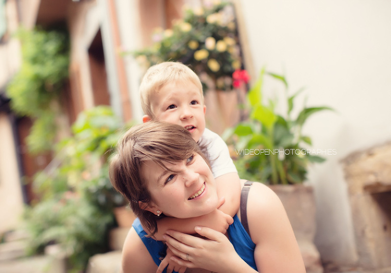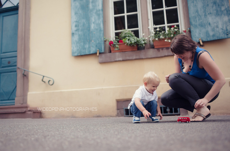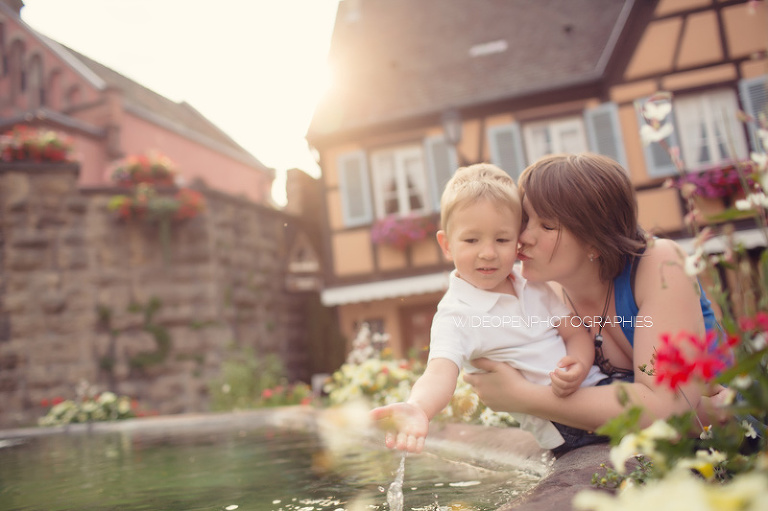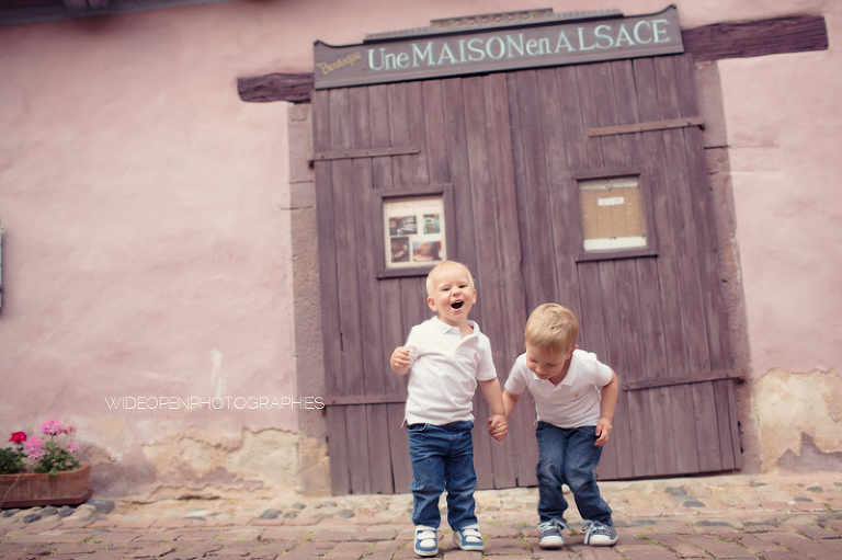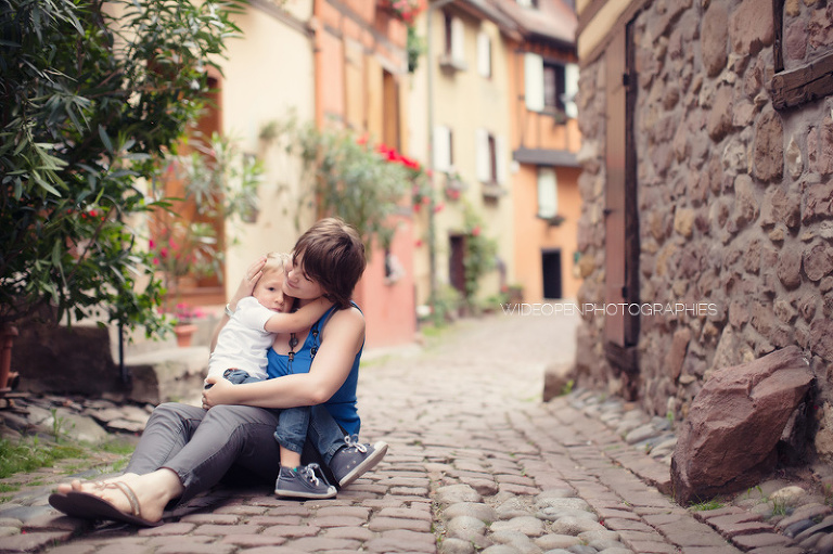 Elle nous avait donné rendez vous dans la très belle ville d’Eguisheim, en compagnie de ses 3 hommes. Une famille ultra caline, bien animée par ses 2 petits blonds qui se ressemblent tellement, sans être jumeaux.