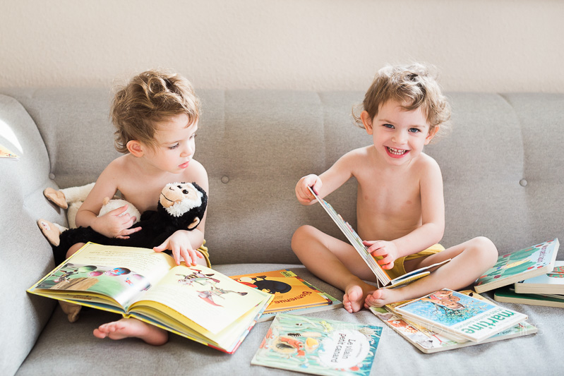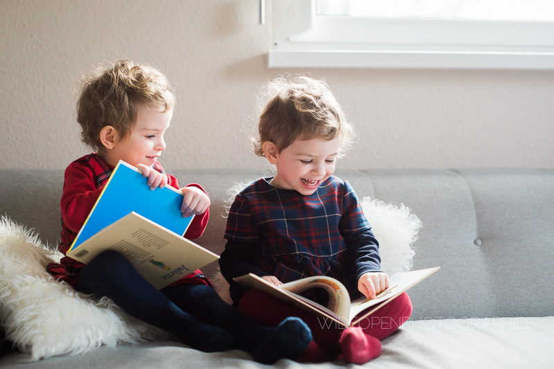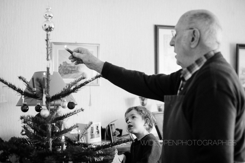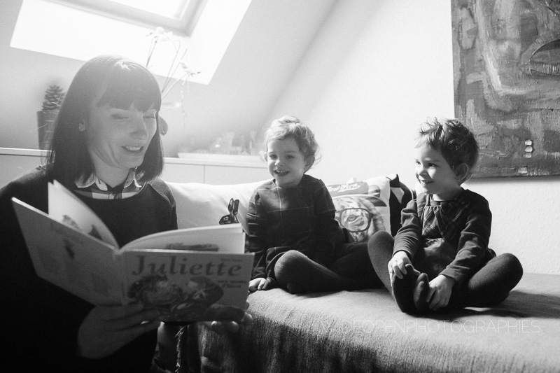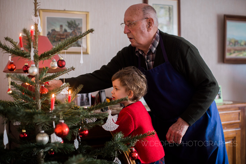 La 1e fois, j’avais rencontré ces jumelles dans un verger, à cueillir des pommes et fleurs avec leurs grands-parents. J’avais pu les revoir au musée Vitra à Bâle en famille pour une séance tout en design. Cette fois ci c’est bien au chaud autour du sapin, à rire, lire, se câliner et allumer les bougies du sapin avec leur arrière grand père. Et bien oui noël en Alsace, c’est aussi des vraies bougies dans le sapin 😉