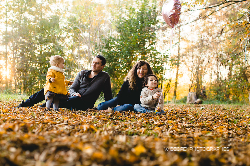 Elle souhaitait une séance famille automnale avec une belle lumière dorée et ne pas être couvert comme en hiver.