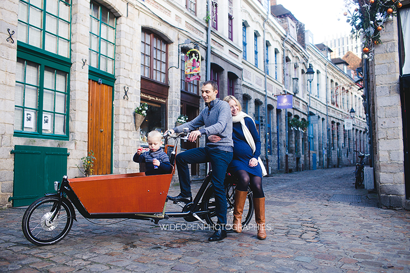 Tout simplement parce que cette famille qui habite dans tout proche du vieux lille se déplace principalement avec ce mode de transport. Et il y en a un qui visiblement adore aller dedans et demande à son papa de rouler encore et encore sur les pavés lillois tout en faisant des bulles.