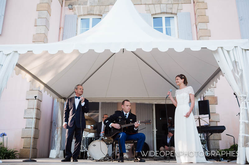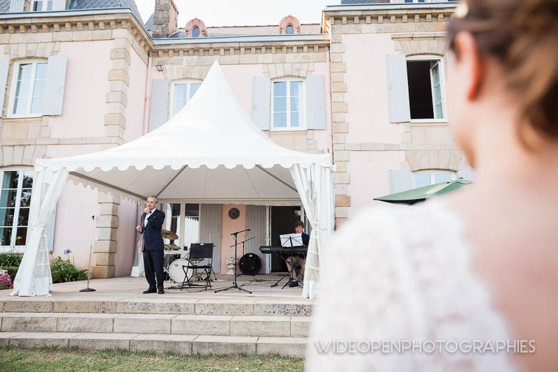 Un cocktail avec vue sur la mer, qui dit mieux?! Un cocktail avec vue sur la mer avec le papa de la mariée au micro pour chanter en compagnie de son groupe de très bons airs de jazz. Et il faut dire qu’Antoine chante particulièrement bien et encore plus quand il est accompagné de sa fille au micro.
