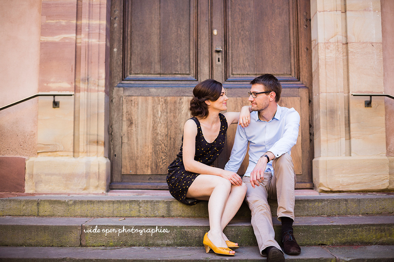 Ces 2 là avaient décidé de faire un mariage en 2 parties. La première pour un mariage civil dans la très belle ville de Strasbourg, dans le Bas Rhin. Et la 2e partie quelques mois plus tard cette fois ci dans le Haut Rhin entre Mulhouse et Bâle, la région d’origine d’Anne, notre très jolie future mariée…. aux chaussures jaunes!