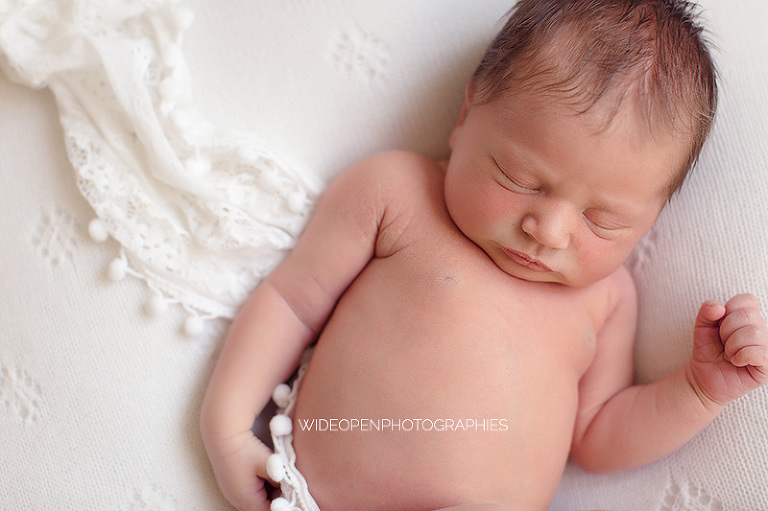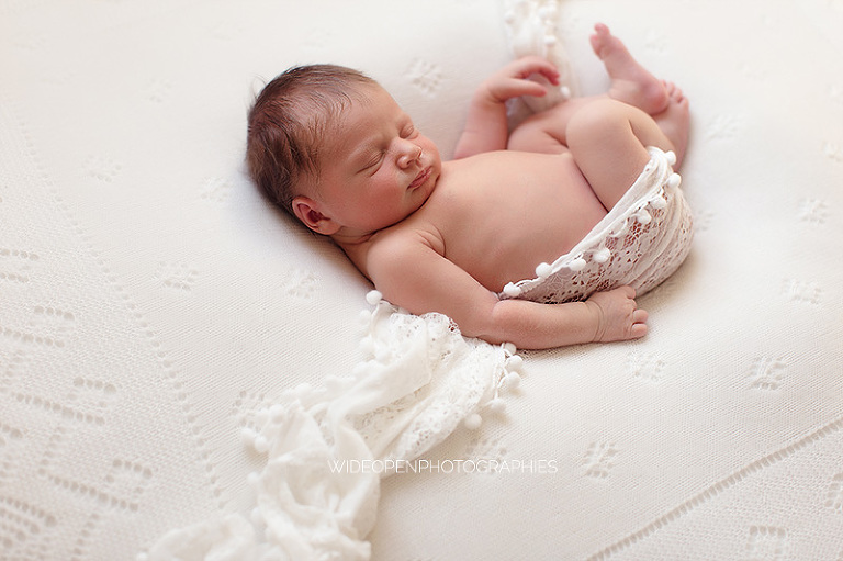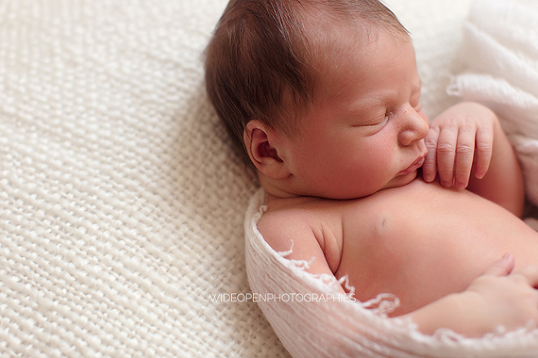 C’est donc naturellement qu’elle est revenue avec le même lange pour la séance naissance de sa jolie Anna. Un bébé totalement différent, à la bouille bien rebondie et chevelue.