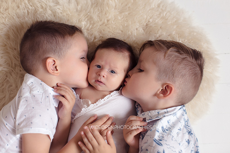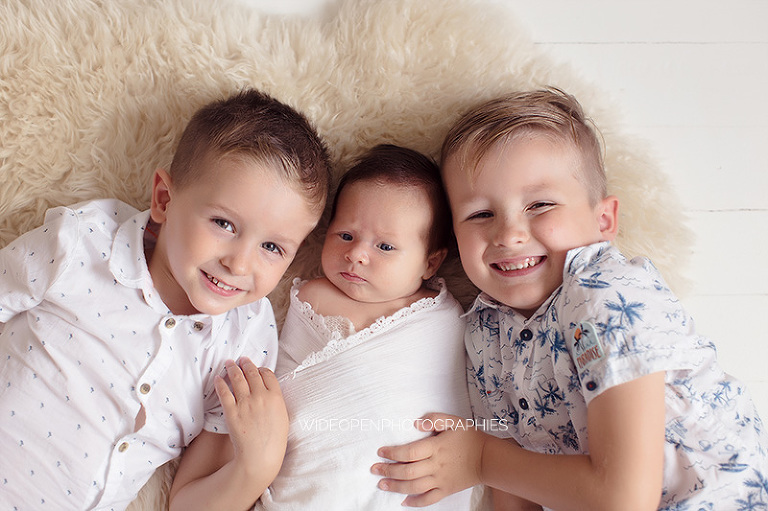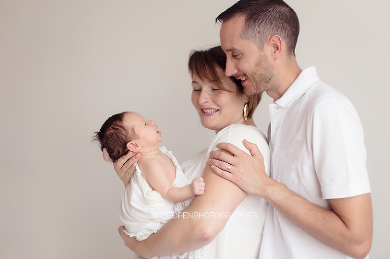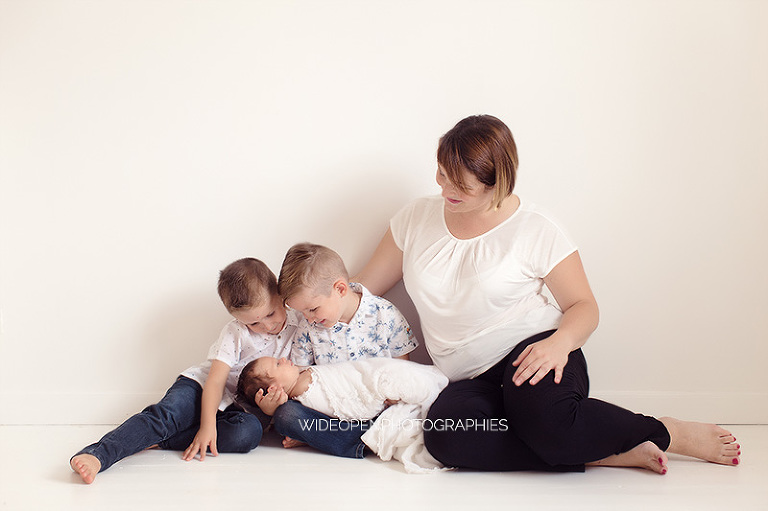 Et comme c’était un « bon bébé » post terme, Ysaline a été au top, dormant une très grande partie de la séance. Car il a fallu programmer en 2 fois cette séance et pouvoir avoir tout le monde en même temps. J’ai ensuite retrouvé cette famille au complet pour terminer les photos de famille. Ysaline avait alors 5 semaines et surtout des yeux grands ouverts, ce qui nous a valu de beaux échanges de regards.