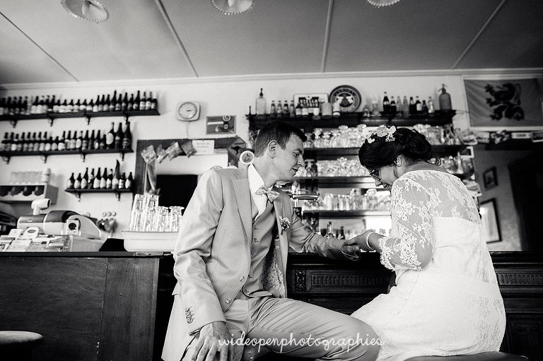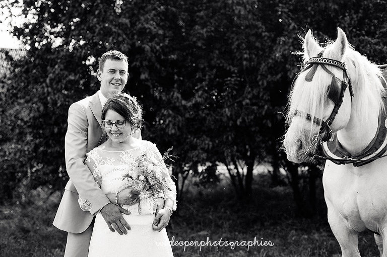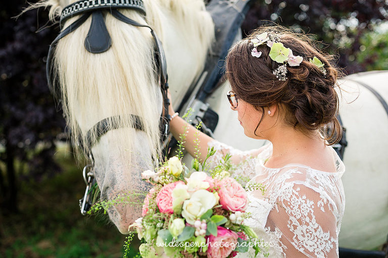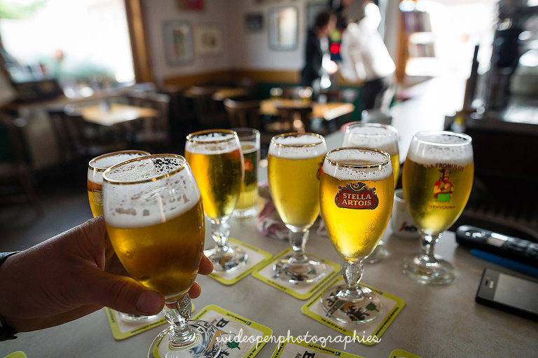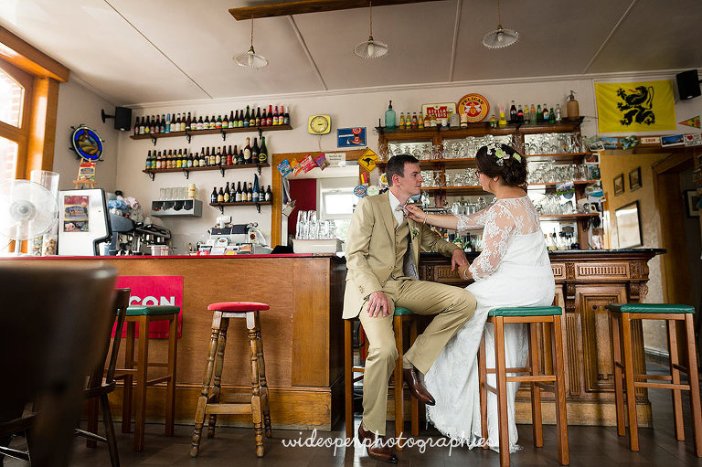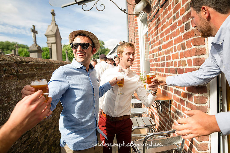 Au delà de tous ces détails multiples auxquels Carole avait pensé comme ces décorations florales magnifiques de toute l’église, la jolie cox, ou les tenues liberty associés mariés/témoins, il y a eu également de belles surprises comme ces chevaux lors des photos de couple ou cette petite parenthèse rien qu’à 2 dans cet estaminet typique du Nord. Estaminet où ils sont d’ailleurs tous venus ensuite jouer aux fléchettes et fêter cela autour de bières lors du vin d’honneur.