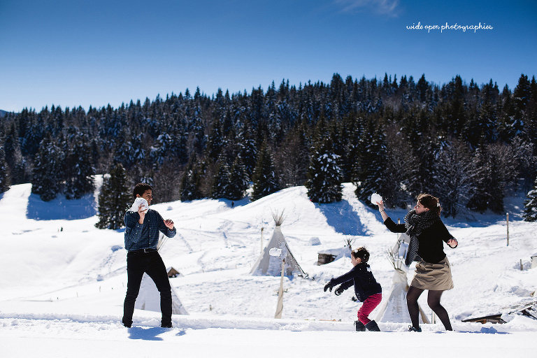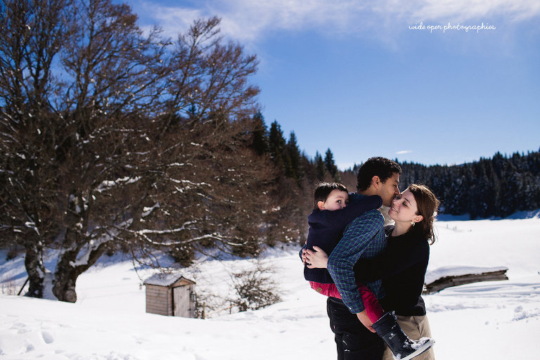 Avec la famille AP, je leur ai presque pas laissé le choix du lieu de la séance prévue début mars : dans la neige!
