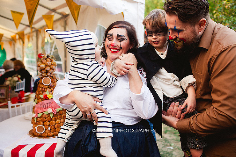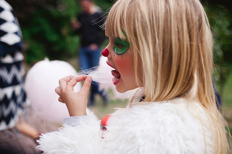 Ensuite, direction leur grande maison pour de la barbe à papa, du pop corn collant, une maquilleuse nous transformant tous en des personnages de cirque et des jeux façon estaminet, le tout sous une canicule d’octobre.