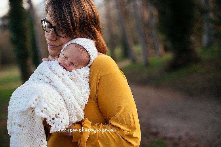Biensur en tant que photographe nouveau ne extérieur alsace, je vous dirais qu’il faut que toutes les conditions soient réunies et notamment la météo! Avec un nouveau-né le beau temps doit être de rigueur, car contrairement aux séance photo naissance en studio, même si bébé reste habillé et emmailloté, un peu de chaleur aide grandement. Il faut aussi que bébé soit « partant » mais souvent le grand air et une petite marche fait vite son effet.