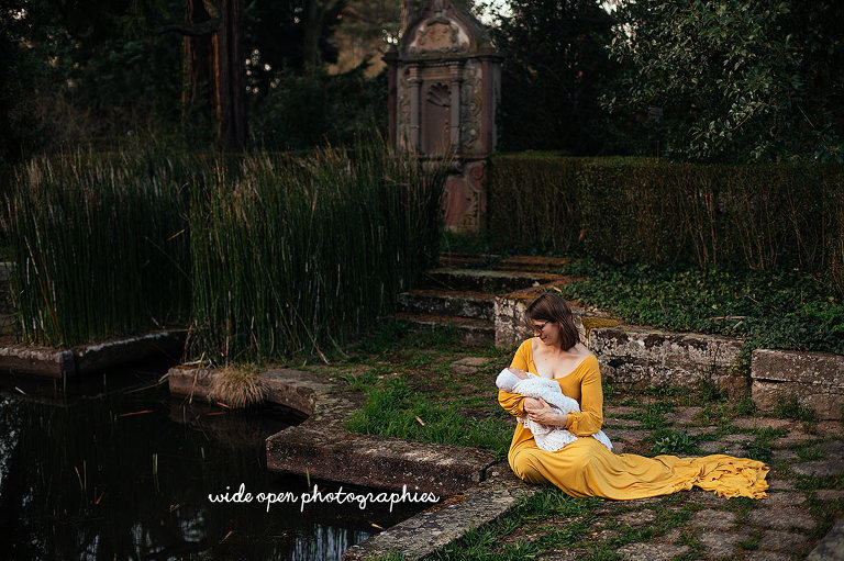 Nous avons prié tout ce que nous pouvions jusque la date de mon voyage en Alsace et miracle! Une météo caniculaire en ce jour d’avril! Le jour parfait pour aller se promener dans les allées du domaine de la Léonardsau près d’Obernai près très loin Strasbourg, pour cette séance photo naissance. Un lieu romantique à souhait d’un jardin à l’anglaise que nous avions déjà découvert lors de cette séance photo famille quelques années plus tôt.