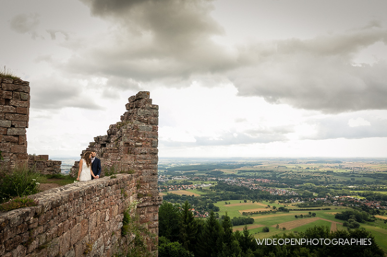 Ce n’est pas le premier mariage que nous photographions en Alsace et du côté de Strasbourg. Après un mariage en hiver et des photos de couple dans un tempête de neige, cette fois ci Kelly et Thibault se mariaient en été et avaient fait le choix de faire leur photos de couple parmi les ruines d’un chateau. Le tout avec une vue panoramique sur les plaines d’Alsace.