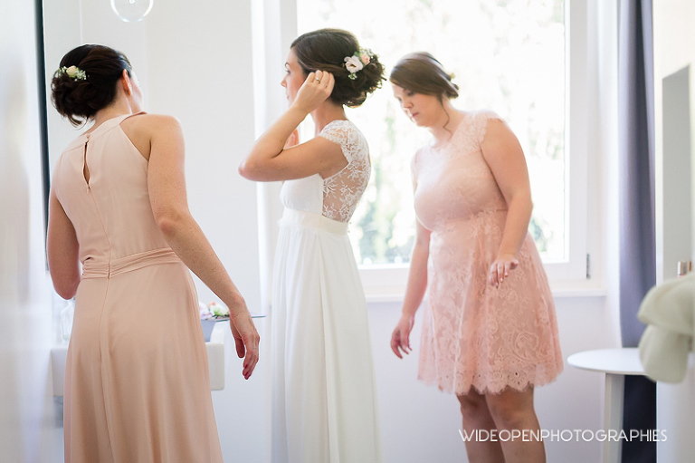 Anne avait choisi de se préparer, accompagné de ses demoiselles d’honneur habillées de tenues rose poudré, dans le gite du Schweighof, près d’Altkirch. Oui avec l’Alsace le seul soucis pour nous, ce sont les noms! Ne nous demandez pas de prononcer toutes ces villes que nous parcourons car parfois c’est juste impossible!