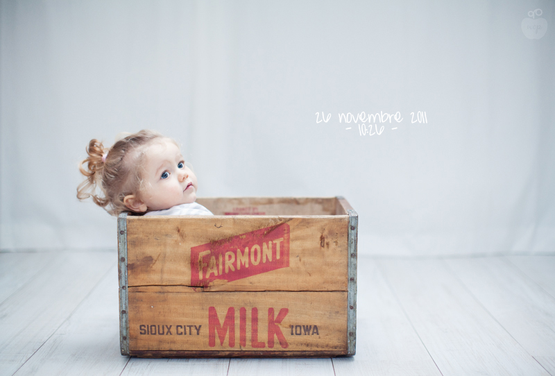Combien de fois j’ai eu en tête des photos en la mettant « en scène » avec un accessoire wop, et combien de fois elle refusait catégoriquement. Du coup quand j’ai reçu cette caisse ancienne des USA pour les séances nouveau-né, je me dis « et si….non non elle va hurler, et puis elle est trop grande elle...