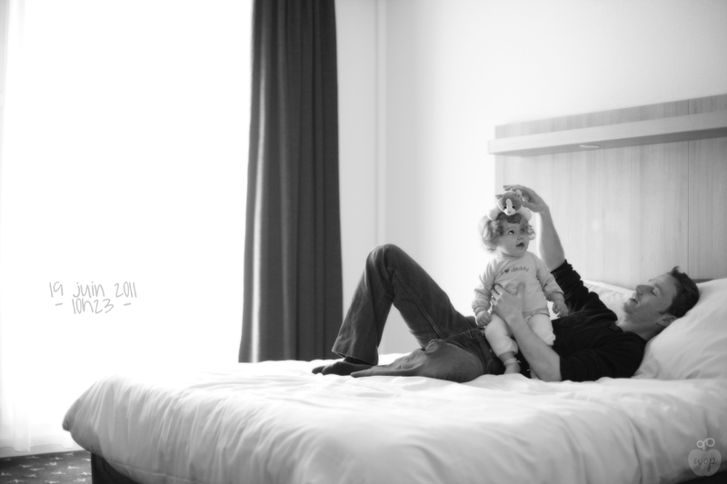 Aujourd’hui c’était au tour de papa… 1e fête des pères. Même si nous n’étions pas chez nous pour la fêter, la joie d’être ensemble suffisait pour nous rendre heureux. Tu es sa fille adorée, sa « jolie poupée »; tu lui remplis le cœur de soleil par tes sourires chaque matin et tes « papapapapapa » Il est celui...